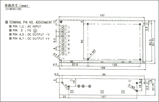 注:1、以上參數測試條件為:230VAC輸入,額定負載,25℃ 70% RH.濕度。
