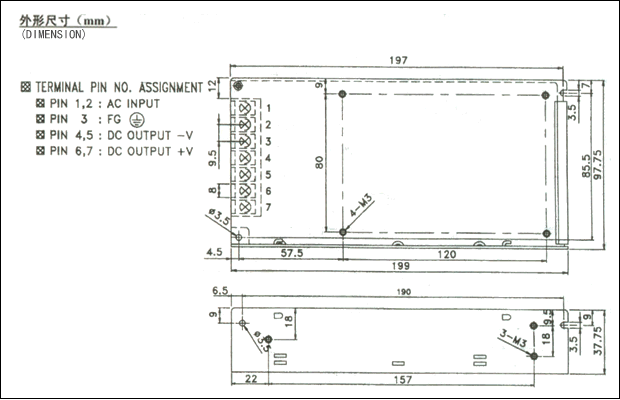 85~132VAC/180~264VAC開關(guān)選擇 47~63Hz;255~370VDC |